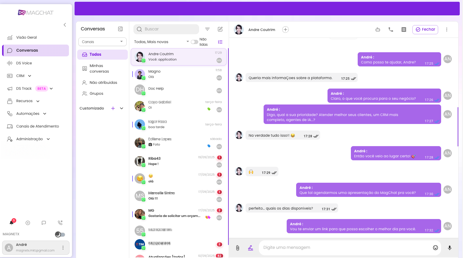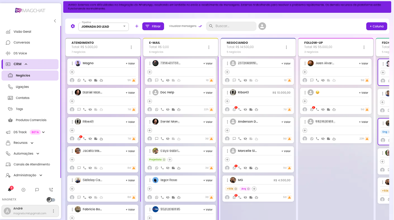 Pensando assim, criamos o MAGCHAT: um CRM para o seu app de mensagens favorito, para atendimento com IA, robôs e organização de leads com estrutura Kanban. Potencialize cada mínima oportunidade de venda, gerencie melhor seus clientes e escale cada vez mais o seu negócio. Tudo isso dentro de um só App!
